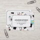 Adorable, modern desktop graphics that include: coffee cup, laptop, tablet, tablet sleeve, pen, markers, pencils, notepad, colour swatches, eyeglasses, smart phone, paper clips, ruler, and a plant. Uniquely different, and can be customised on both sides. Just use the template at right for your convenience.