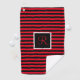 Cute Modern Custom Initial Red and Black Striped Golf Towel
