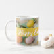 Cute easter themed mug for mum, mum for grandma, with a pretty collage of Easter eggs, easter bunny in spring pastel colours. Personalised with your own photo.