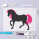 This slick and cute horse design is perfect for any horse lover. It features an elegant graphic design with black and pink colours.