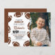 Presenting the charming Cute Modern Football Budget Photo Birthday Invitation! This delightful invitation blends the love for American football with a contemporary and playful vibe. Its brown colour and adorable illustration of a little rookie football player instantly captivate kids. The typography, featuring a mix of playful fonts and a personalised photo of your baby adds an element of fun and excitement. Ideal for sports-loving kids, this invitation exudes a modern and cute appeal, creating an unforgettable and joyous birthday celebration centred around their favourite sport. Get ready for a sports-themed extravaganza full of laughter and cheer! Don't miss out on this American football theme design to start your little rookie's birthday party plans without a pinch to your pocket.