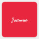 Cute Modern Minimalist Red White Calligraphy Name Square Sticker