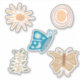 Simple and cute modern nature abstract shapes for scrapbook sticker collection for scrapbook decorations. The collection include five shapes. A blue butterfly, brown butterfly, leaf branch, sun and moon shapes are included in the collection.