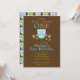 Start your boy first birthday party off right with our adorable blue owl kids birthday party invitations. Perfect invitation for your 1st birthday party celebration! Our sweet owl invitations features a cute little owl sitting on a green leaf tree branch with flowers and is set on a stylish brown background. Our owl boys birthday party invitation features an unique owl pattern background. Visit our shop for matching thank you note cards, birthday stickers, thank you stickers and postage stamps. © Petit Tatti