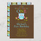 Cute Modern Owl 1st Birthday Party Invitations