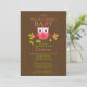 Start your event off right with our cute owl Baby Shower invitation featuring the sweetest little owl sitting on a lime green tree branch with pink flowers set on a chocolate brown background. Our modern & colourful owl baby shower invitation features a unique owl background. Perfect for your owl theme baby shower for a girl baby shower, boy baby shower or gender neutral baby shower. Just personalise with your information and you're all set to go! Matching items including baby shower postage, favour stickers, thank you cards & thank you stickers are also available in our shop. © Petit Tatti