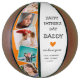 Create your very own special fathers day gift with this cute modern photo basket ball. Featuring 5 square framed photographs on an orange background that can be changed to any colour, the text 'Happy Father's Day, DADDY', a cute little heart that can also be changed to any colour, a we love you lots message and name/s. Makes a wonderful keepsake gift for dads and grandpas on Fathers day, birthdays or christmas.