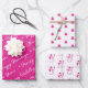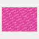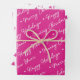 A set of holiday designs with handwritten script "Merry Christmas" and "Happy Holidays" Christmas trees, Snowman pattern, set of three wrapping sheets in the same bright hot pink tone, best for the holiday season gift wrapping.