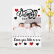 Modern custom photo card with cute script and love hearts for Valentine's Day.