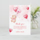 Celebrate valentine baby shower with cute lovely modern elegant sweetheart theme, valentine baby shower theme, our collection design feature elegant script font " a little sweetheart is on the way", watercolor teddy bear with pink and red hearts balloon. You can customise your own text via "personalise this templete" button.