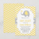 Cute Modern Yellow Grey Elephant Gender Neutral Baby Shower Invitation | Chevron Baby Shower Invitation