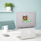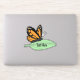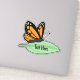 A colorful and cute sticker featuring a monarch butterfly sitting on a leaf. A great way to label your personal items.