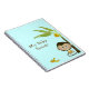 Adorable note book for the mum to be done in aquamarine, with cute cartoon graphics of a little monkey eating a banana by a palm tree. Brown text reads My Baby shower and is customisable to read what you want. Perfect for listing gifts received, special notes to the mum to be from her shower guests and so much more.