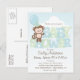 Cute Monkey; Blue & Green Baby Shower Invitation Postcard