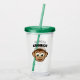 Cute monkey cartoon custom kid's name Acrylic Tumbler glass gift. Personalised drink ware for home, school, parties etc. Fun transparent plastic drinking cups for kids. Add your own name or funny quote. Includes green lid and straw. Other colours available too. Happy chimp design for children. Create one for son, little brother, grandson, nephew, daughter etc. Cute safari theme illustration for children.