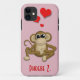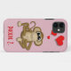 Pink Casemate iPhone 5 Case with a cute affectionate little brown monkey illustration with 3 red hearts above him, personalised with your name.
