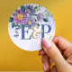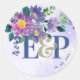 Cute Monogram Beautiful Purple Blue Floral Wedding Classic Round Sticker