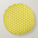 Modern round pillow features a yellow geometric honeycomb pattern and a customisable monogram with bees. This cute pillow is great for kids room or nursery.