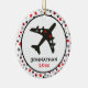 This fun holiday ornament features a black aeroplane with stars flying on a white and black circle frame with a background of red, grey and black stars. Add your child's name and year to personalise.