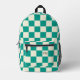 Cute Monogram Initials & Teal Chequerboard Printed Backpack