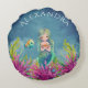 Cute Monogram Name Blue Watercolor Mermaid Round Cushion