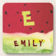 Cute Monogram Red Green Watermelon Custom Kids Coaster