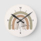 Cute monogrammed script pastel rainbow girly pink round clock.