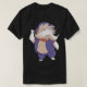 I give wanted to give this a 4 instead of a 5 because these Basic DARK T0shirts run unexpectedly SLIM or Narrow. Which is great if you do not have a potbelly, but I have a paunch. It isn't the shirt's fault that I've got a beer belly. The design and shirt itself is a quality cotton shirt. The color is more of a deep purple, but still a very pretty color. The Basic DARK T-shirts run a bit SLIMMER than the Basic Ts. The neck is a fraction narrower (or seems to be narrower) also. I'm a paunchy middle-aged woman and my neck is 12 inches (31cm) thick and the neckline fell about the same as in the photo of the man, and I had the desire to tug it a bit. So if you're a thick necked man or like loose shirts, be aware these are slimmer shirts. Once I get rid of my lockdown paunch it'll look great. The shirt washed well in cold water with no apparent bleeding. We don't have a dryer, so it hung dry. Did not shrink. Love the colors and the design. The design looks smaller on my shirt than it does on the model on-line. But still, it looks good on the shirt. The printing looks as it does on the model, just the size seems fractionally smaller. Washed garment in cold water, hung dry and design appeared unaffected.