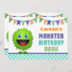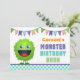 Monster Birthday Bash Party Invitations for boys. Cute custom personalised birthday invites with a cute happy, smiling, green, fluffy, friendly, little monster; colourful bunting and blue polka dots. A colourful modern design with a groovy vintage retro carnival look. These fun, funky, boy monster party invites for kids' / childrens' parties are decorated / printed on both sides / two sides / double sided printing. Can be used for any age birthday for a child's party:- 1st, 2nd, 3rd, 4th, 5th, 6th, 7th, 8th, 9th, 10th, 11th. The Monster Birthday Bash text is fixed but all other text is personalisable / personalizable. If you need any assistance customising your product please contact me through my store and I will be happy to help. PLEASE NOTE:- All invitations on Zazzle have flat printed images.