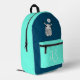 Cute monster navy aquamarine monogram minimalist printed backpack