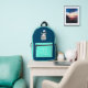 Aquamarine and navy neutral colour backpack with cute anime monster cartoon and cool customisable monogram initials. Perfect for school or college student. Minimalist, cool and sophisticated.