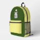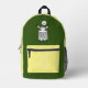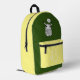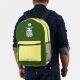 Olive green and lemon neutral colour backpack with cute anime monster cartoon and cool customisable monogram initials. Perfect for school or college student. Minimalist, cool and sophisticated.