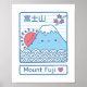A cute doodle inspired by Mount Fuji in Japan. It has a cute red sun peeking out from the side of the blue mountain. And Japanese elements such as cherry blossoms and seigaiha waves. A kawaii and Japanese wall decorative piece!