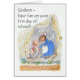 A 'Have Fun on your first day at School' greeting card for a Godson, with a little mouse leaving home to set off for his first day at school. This design is from a hand-painted watercolour illustration by Judy Adamson. You can personalise the inside message.
