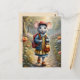 Cute mouse girl on her way to school, custom postcard
