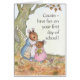 A 'Have Fun on your First Day of School' greeting card for a Cousin, with a little mouse leaving Mousehole Cottage to set off for her first day at school. This design is from a hand-painted watercolour illustration by Judy Adamson. You can personalise inside message.