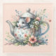 This charming design features an adorable mouse peeking out from a delicately patterned floral teapot, surrounded by lush botanical accents and pastel blossoms. The illustration blends a whimsical animal artwork style with soft watercolor floral design, evoking a warm spring tea party theme. With subtle vintage cottagecore decor elements and shabby chic aesthetic touches like twine and gentle greenery, it’s perfect for creating a cosy, nostalgic mood. The pastel woodland style and gentle palette also make it an ideal fit for cosy nursery wall art or quaint seasonal decor. AI generated artwork.