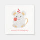 Adorable birthday party design feature a sweet illustration of a mouse holding a lollipop.