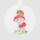 Cute mouse on fly agaric watercolor ornament