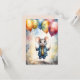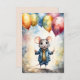 This Card features a cute mouse with a jacket and pants, holding lots of balloons in his hands. Digital art - watercolor. A super cute motif for children! The back is customisable - you can remove or change the colour. Beautiful card for birthday wishes to any child!