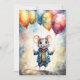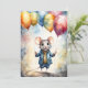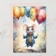 This invitation card features a cute mouse with a jacket and pants, holding lots of balloons in his hands. Digital art - watercolor. A super cute motif for children! Great invitation for your children's birthday party! Custom text and colour (back).