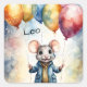 This sticker features a cute mouse with a jacket and pants, holding lots of balloons in his hands. Digital art - watercolor. A super cute motif for children! Pretty personalizable sticker for any child!
