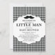Cute boy moustache bash baby shower invitation featuring a black moustache set on a modern frame with a moustache background. Flip our Oh boy, little man baby shower over to find a matching back for an extra special touch.