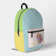 Lightweight and durable, our custom all-over-print Backpack is just what you need. The spacious interior is ideal for travel, school, gym, or any mobile storage need. Bring your stuff with you in style! Features Adjustable padded shoulder straps, two chambers on the inside for laptop storage, mesh side pockets and an identification label.