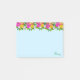 Cute multicolored flowers on light blue post-it notes