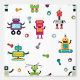A cute multicolored robots kids pattern ideal for Children's birthday parties and gifts, bedroom decor and personalised school essentials. A cute hand drawn robot design perfect for anyone who loves robots, artificial intelligence, sci fi and cute kids patterns.