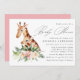 Tropical baby shower invitation featuring a watercolor mum and baby giraffe with ivory and pink hibiscus flowers with green leaves and foliage. "Baby Shower" is displayed in a modern calligraphy script with your baby shower details shown below. The giraffe baby shower invites reverse to a solid pink background with space for text and/or images.