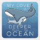 Cute Mum and Baby Whale, Love is Deeper than Ocean Square Sticker