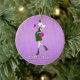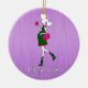 Adorable cute pregnant expectant mother dressed to perfection for the holidays. She is wearing a ponytail, a stylish maternity dress, and high heeled boots while holding a colourful fashion accessory purse and Holiday gift, all wrapped with a pretty bow. Personalise this family keepsake ornament with custom name and Christmas date on the back. Special occasion and blessed event Christmas holiday ornaments from Ornament Central.