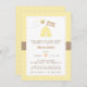 Celebrate the baby shower in honour of the mummy-to-be with this elegant and stylish bee themed baby shower invitation in a colour palette of pastel yellow, white and brown. Elements of design include a cute little bee that is flying by towards the bee hive and leaving a heart shape trail. Background of yellow and white hexagon honeycomb pattern. Witty and amusing pun write up that plays on the bee theme, "Mummy-to-Bee", Wow the guests with this bee baby shower invite! Personalise easily with your party details.